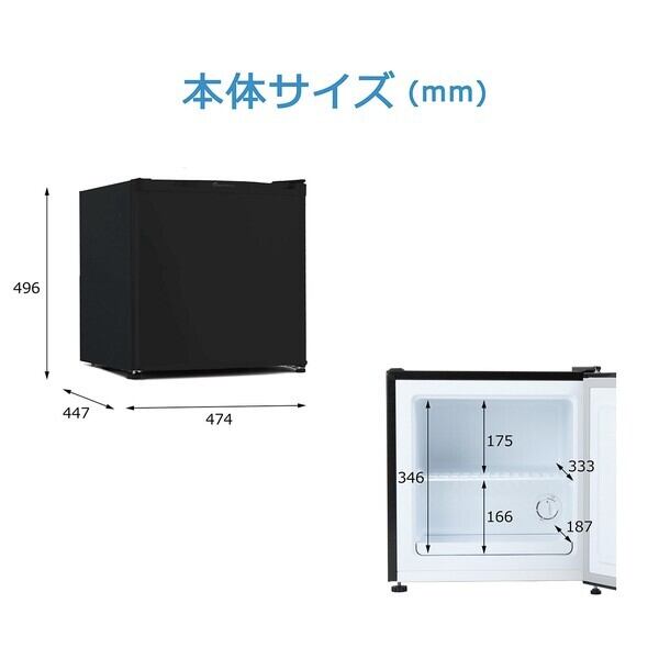 ●狭いスペースにも設置ができるサイズ。大容量の収納力でまとめ買いした冷凍食品の保存に大活躍!
