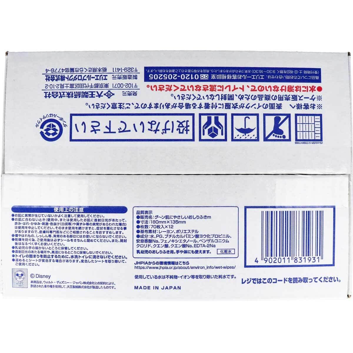 グーン肌にやさしいおしりふき ディズニーツムツムデザイン 詰替 70枚×12個