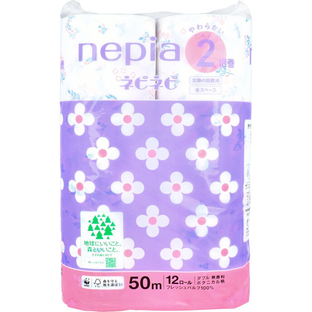 ネピア ネピネピ トイレットロール 2倍巻 ボタニカル柄 ダブル 50m×12ロール入